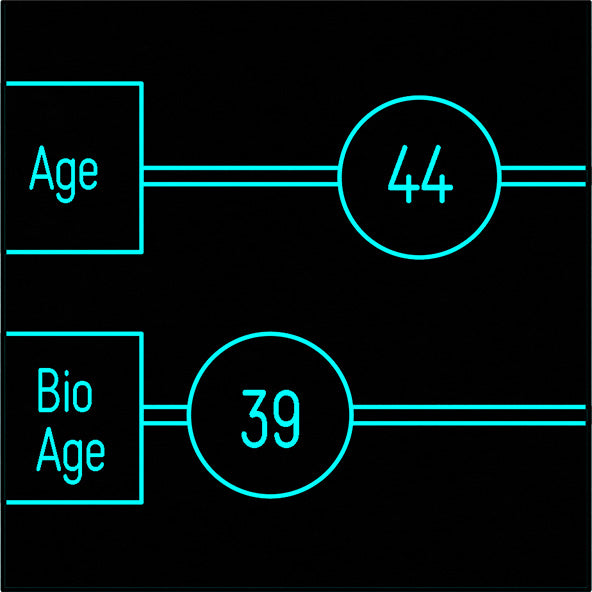 BioAge™ inkluderar 9 biomarkörer som starkt korrelerar till biologisk ålder, vilket ger en djupare insikt i kroppens åldrandeprocess.