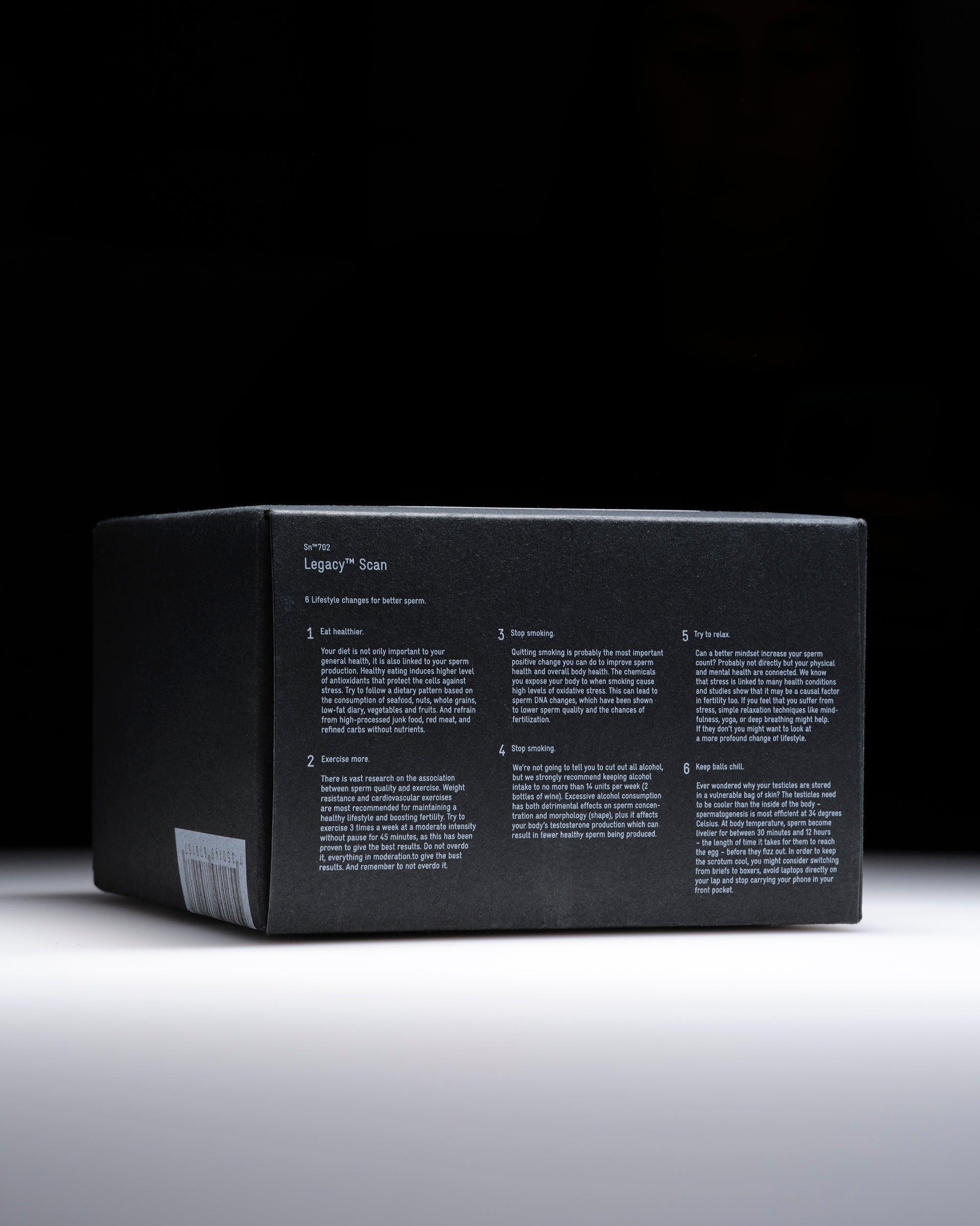 Legacy Scan™ kan hjälpa dig förstå hur din spermiekvalitet utvecklas. Kontinuerliga tester möjliggör för att förstå effekten av olika initiativ.
